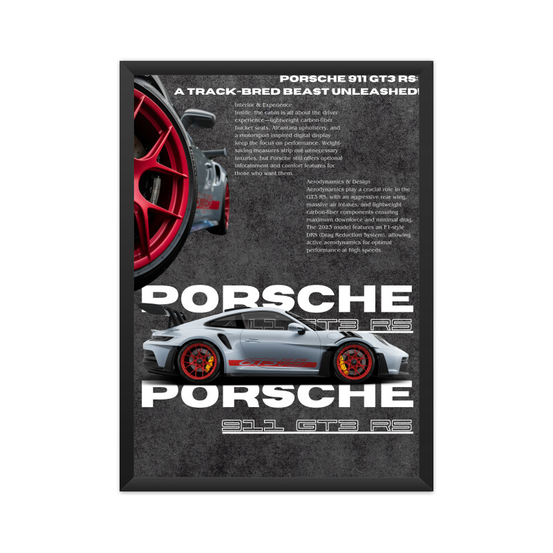 + Free ShippingExperience the raw power and precision of the Porsche 911 GT3 RS, a machine born for the track yet tamed for the road. With its high-revving 4.0L flat-six engine, lightweight aerodynamics, and race-inspired engineering, this poster captures the essence of relentless performance. Every curve, every wing, and every detail screams speed, precision, and dominance. A must-have for enthusiasts who appreciate the art of pure driving.