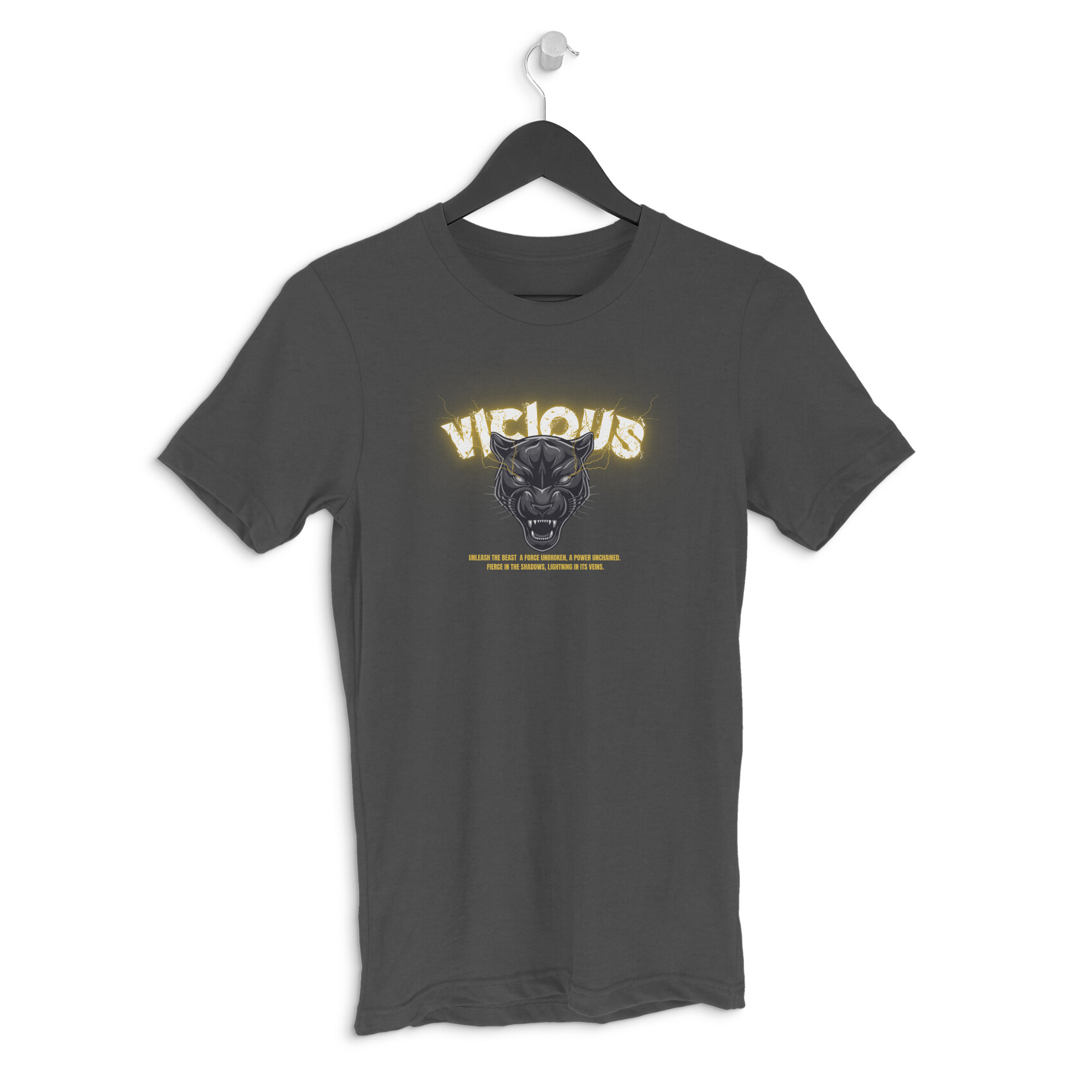 A bold and electrifying design featuring the fierce head of a black panther, eyes burning with intensity, set against a backdrop of crackling lightning. The words “Unleash the Beast – A Force Unbroken, A Power Unchained. Fierce in the Shadows, Lightning in Its Veins.” add to the raw, untamed energy of the piece. Perfect for those who embrace their wild side and move with unstoppable power.